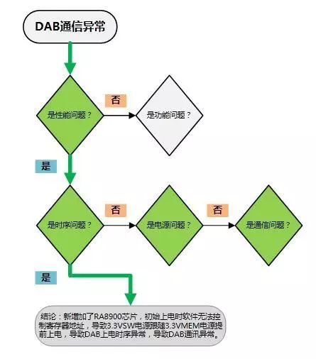 樣品初次上電,DAB芯片無法和MCU正常通信。這是個富有挑戰的問題,為了探究原因,我們采用排除法的思考方式,分析如下: